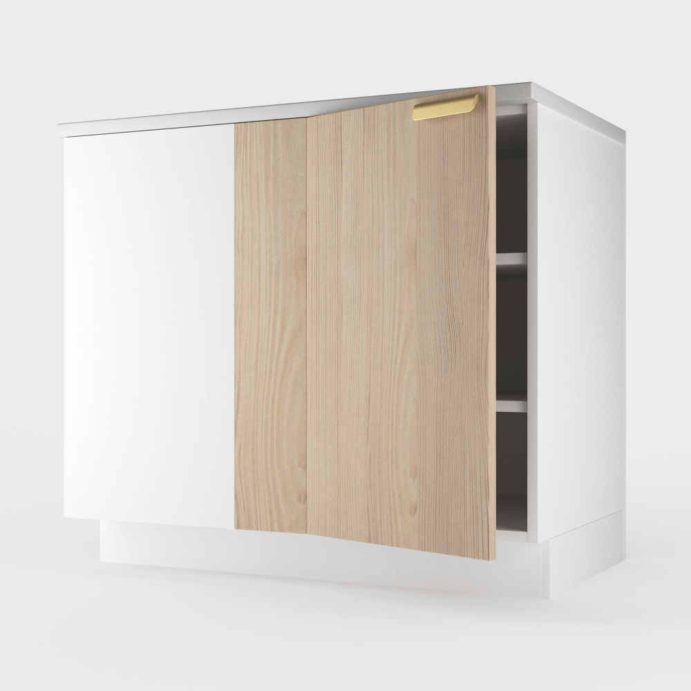 Poznaj Szafkę Dolną Narożna - idealną do zagospodarowania trudnego w użytkowaniu narożnika kuchni. Składa się korpusu  i białego tyłu z HDF. Jej wnętrze wyposażone jest w 2 półki do montażu w dowolnym miejscu, na których z łatwością uporządkujesz kubki, talerze lub artykuły spożywcze. Szafkę tę można zagospodarować również za pomocą wyjeżdżanych systemów typu Nerka. Szafkę zamyka front z najwyższej jakości materiałów. Unikalne kolory szafki idealnie wpasują się w Twoją kuchnię i sprawią, że korzystanie z niej będzie czystą przyjemnością.