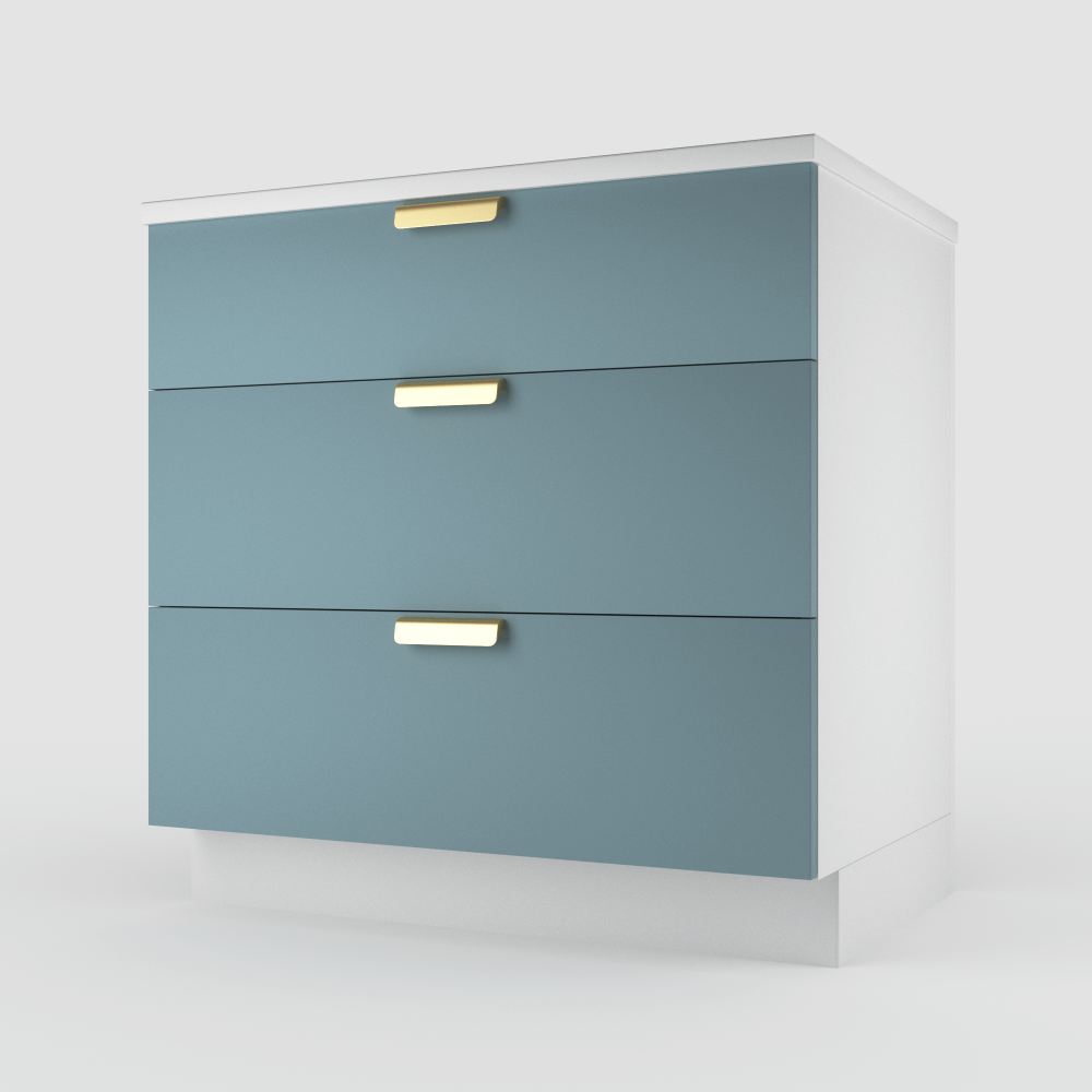 Poznaj Szafkę Dolną z Szufladami - pojemna i wygodna w użytkowaniu. Składa się ze standardowego korpusu i białego tyłu z HDF. Jej wnętrze wyposażone jest w 3 szuflady marki Blum, w których z łatwością uporządkujesz garnki, talerze lub artykuły spożywcze. Unikalne kolory szafki idealnie wpasują się w Twoją kuchnię i sprawią, że korzystanie z niej będzie czystą przyjemnością.
