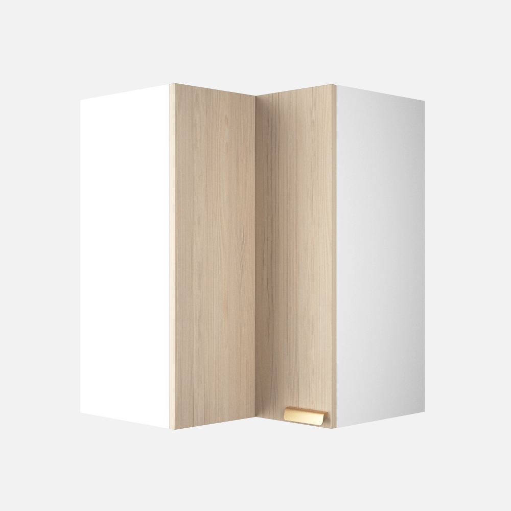 Poznaj Szafkę Górną Narożną kształt w "L" - pojemna i wygodna. Idealna do zagospodarowania trudnego w użytkowaniu narożnika kuchni. Składa się korpusu i białego tyłu z HDF tworzących kształt litery "L". Jej wnętrze wyposażone jest w 2 półki do zamontowania w dowolnym miejscu, na których z łatwością uporządkujesz kubki, talerze lub artykuły spożywcze.  Szafkę zamyka front z najwyższej jakości materiałów. Unikalne kolory szafki idealnie wpasują się w Twoją kuchnię i sprawią, że korzystanie z niej będzie czystą przyjemnością.